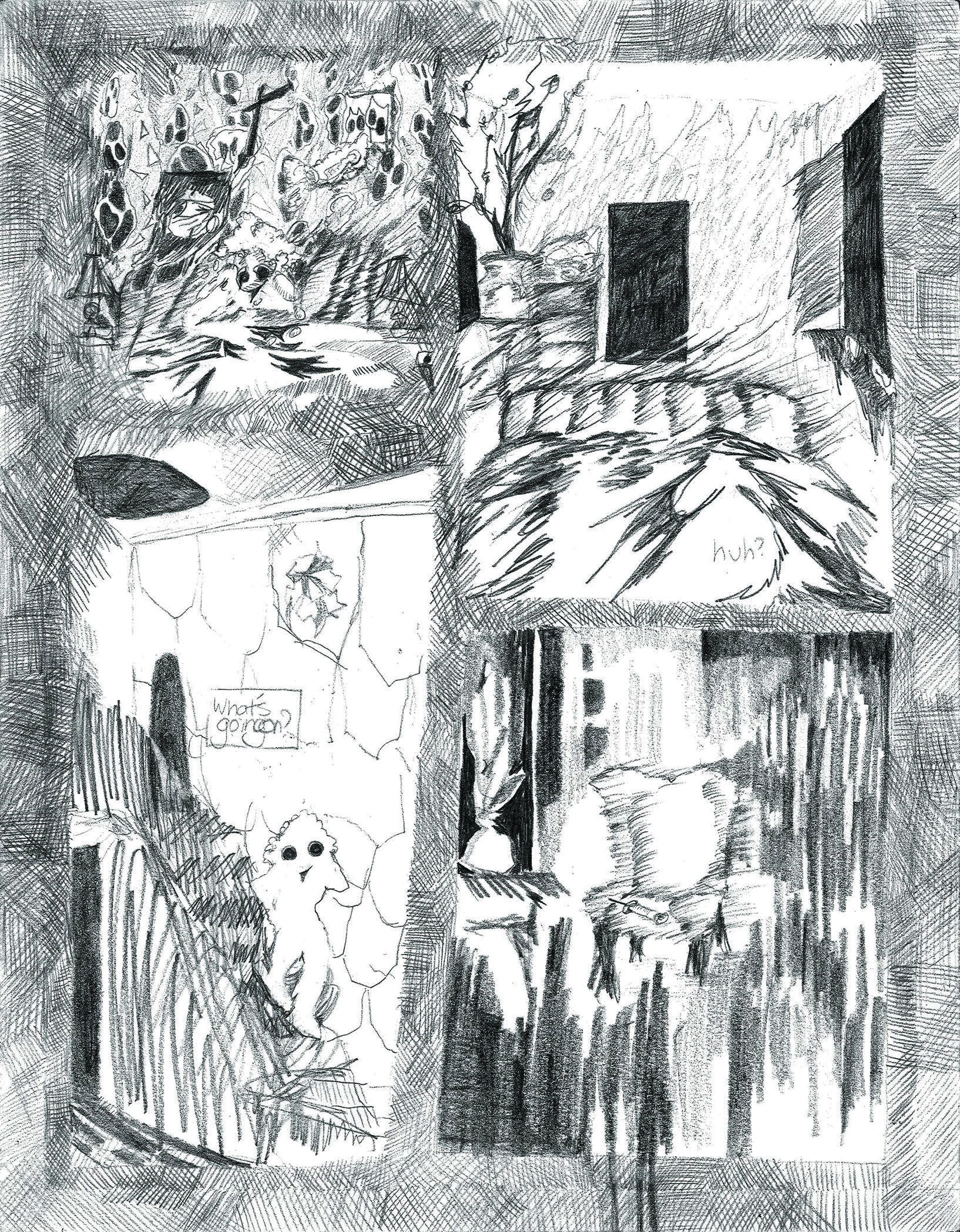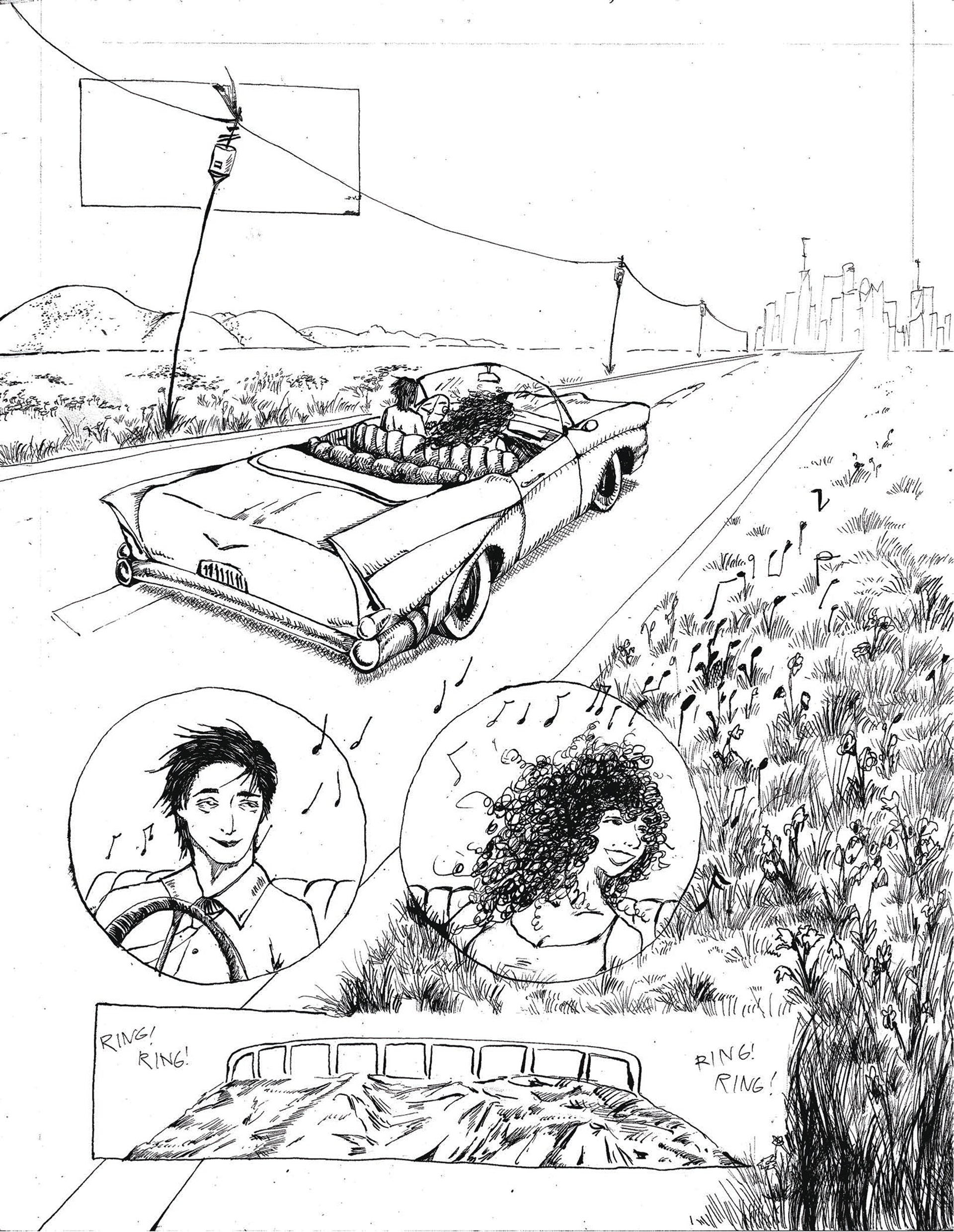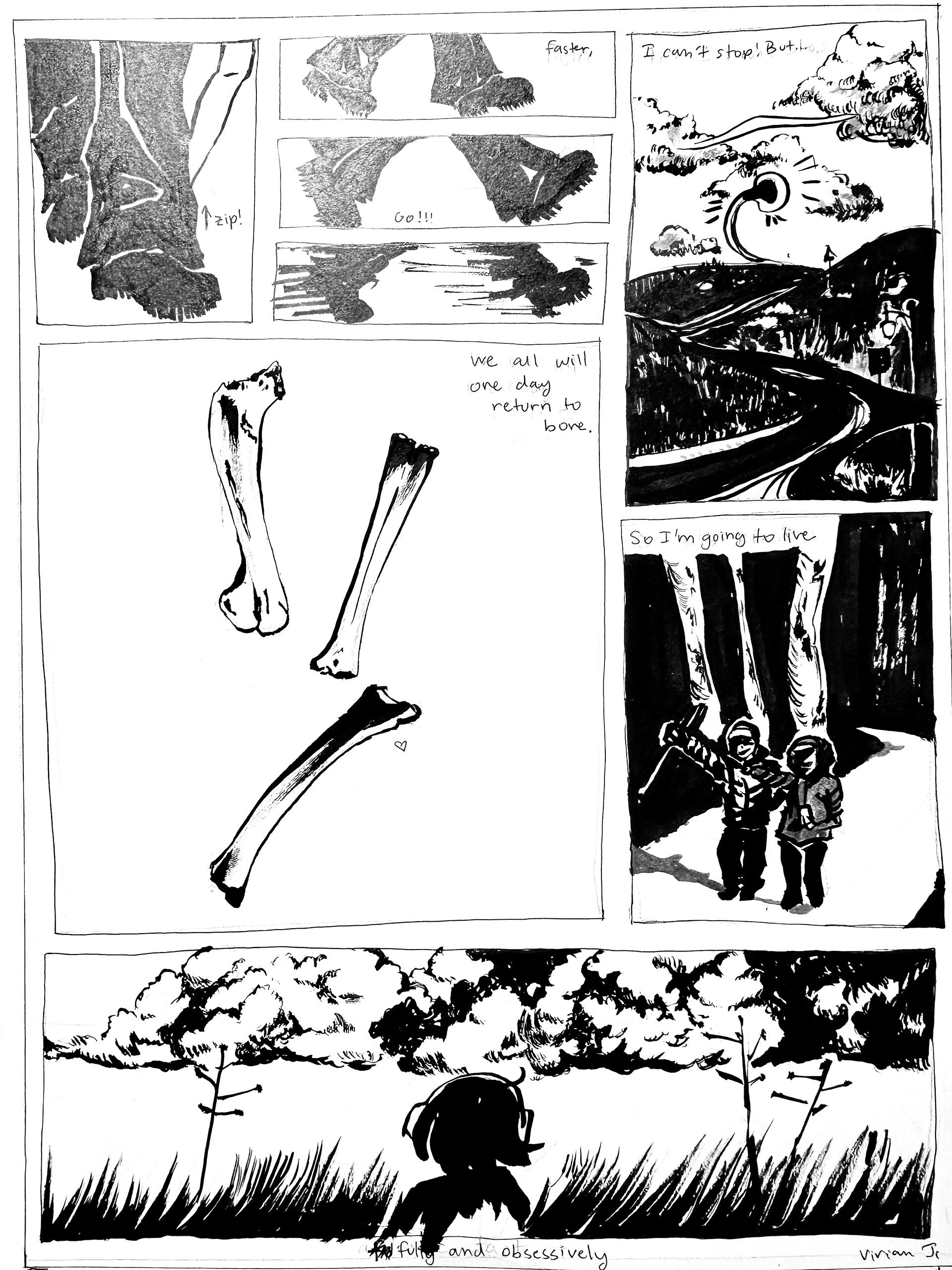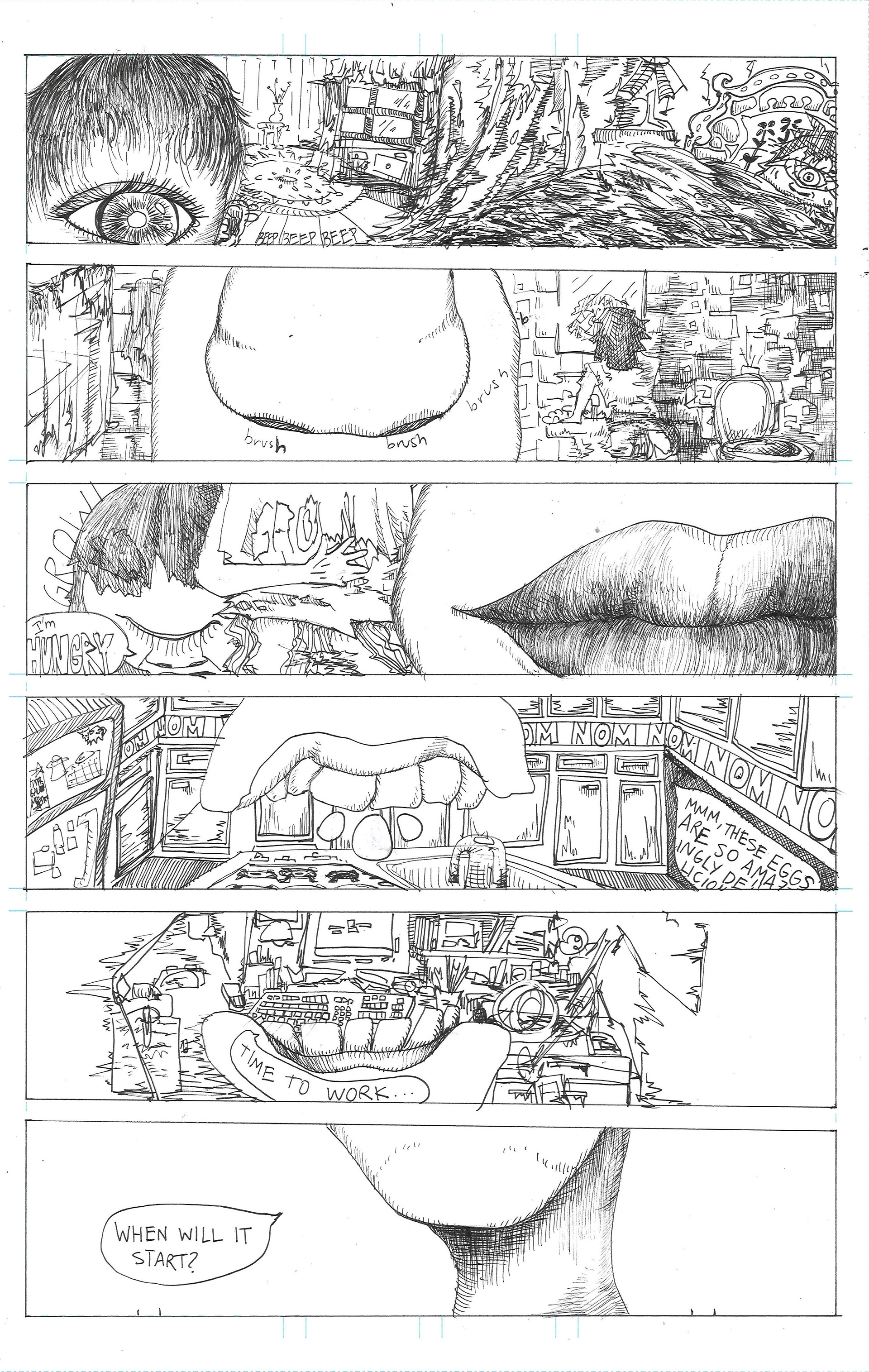 Improv Day in the Life Page 1, Dimensions 11 x 17 inches, Micron Felt Tip on Bristol