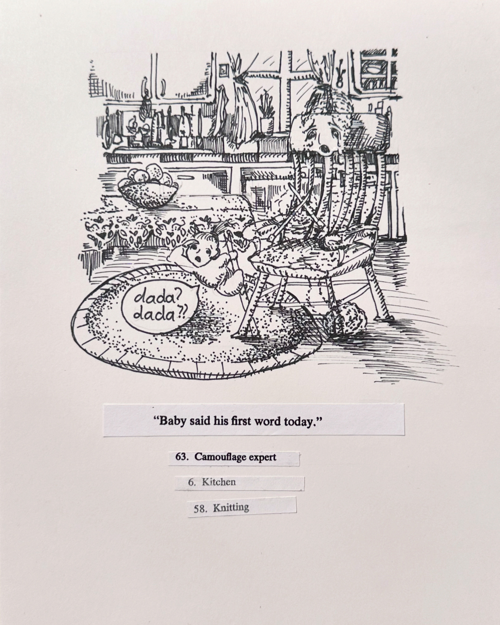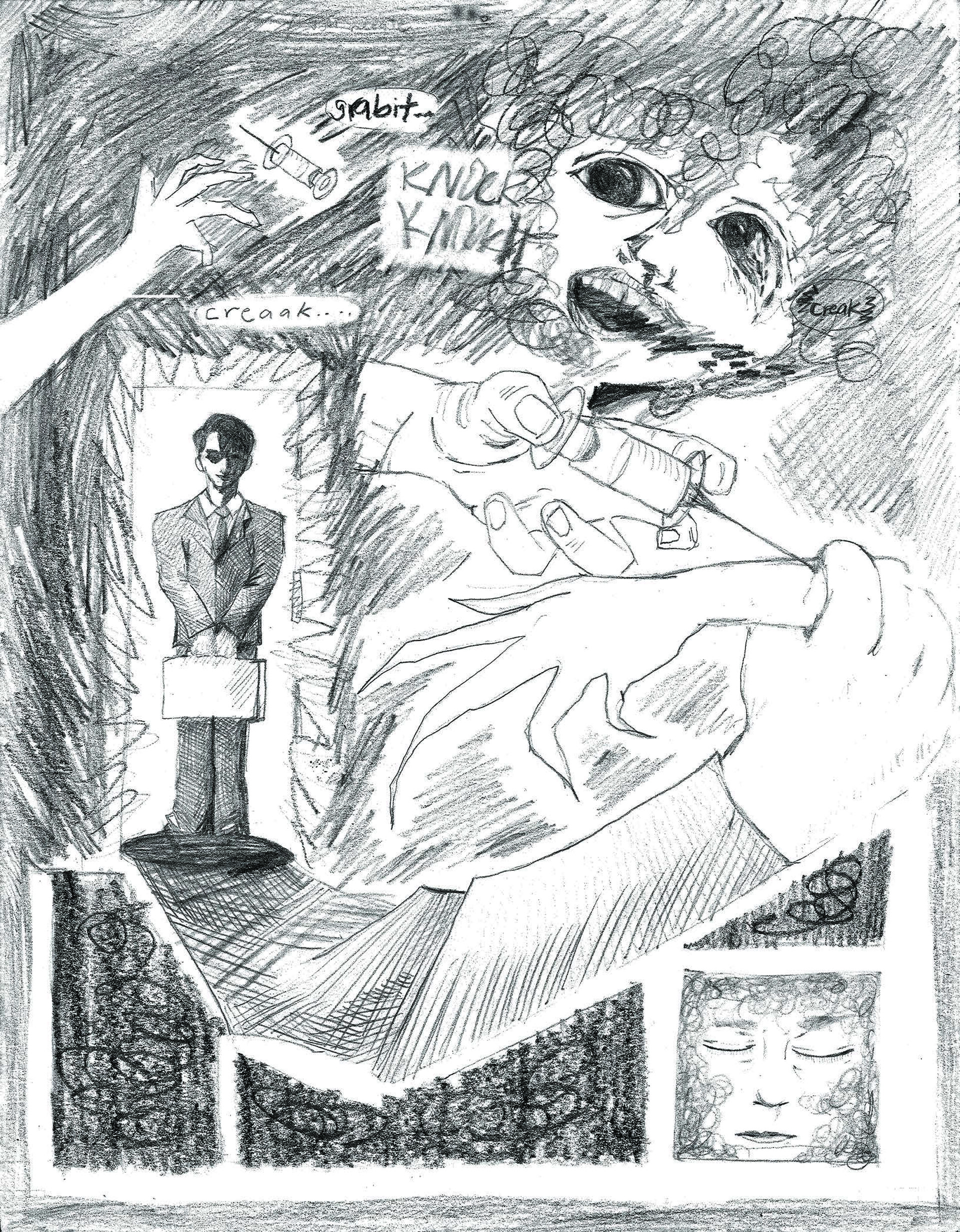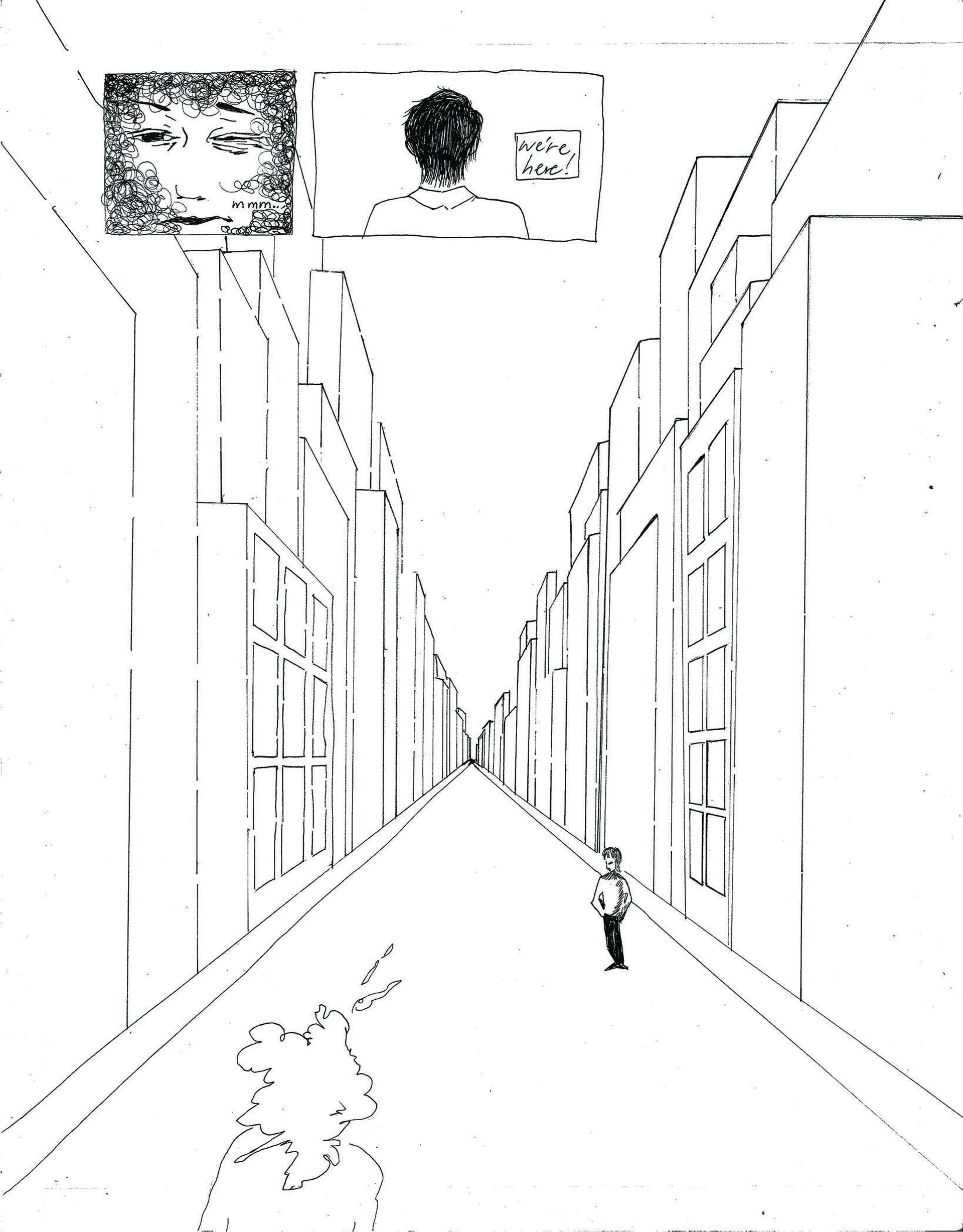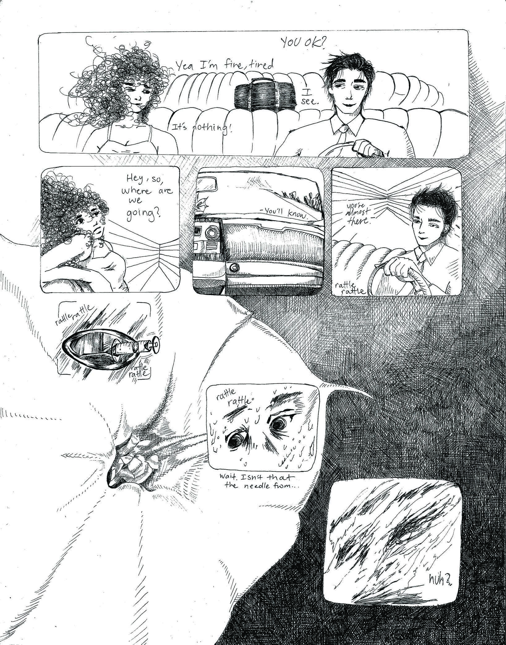 Improv Day in the Life Page 1, Dimensions 11 x 17 inches, Micron Felt Tip on Bristol
