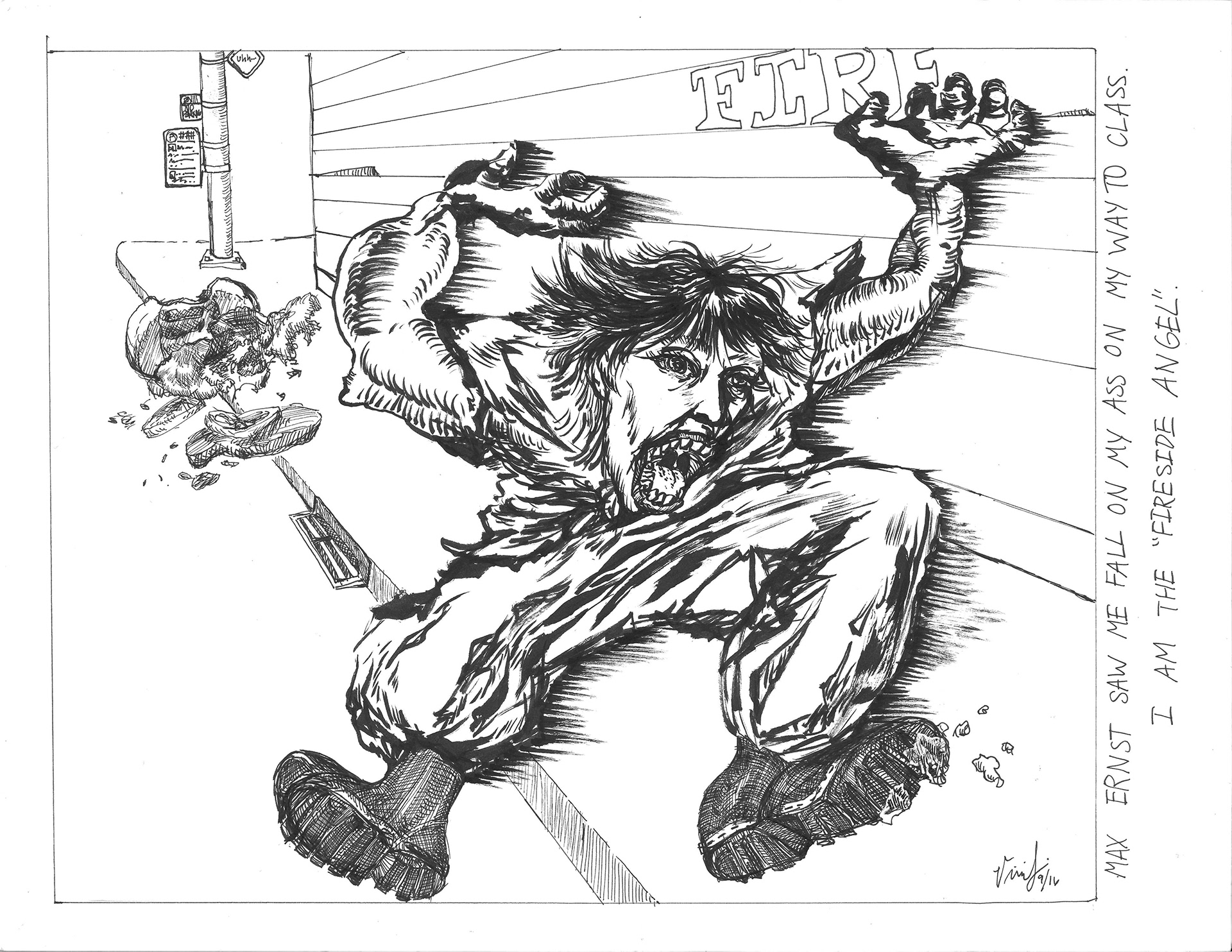 "Fireside Angel" 9 x 12 inches, ink on Bristol
